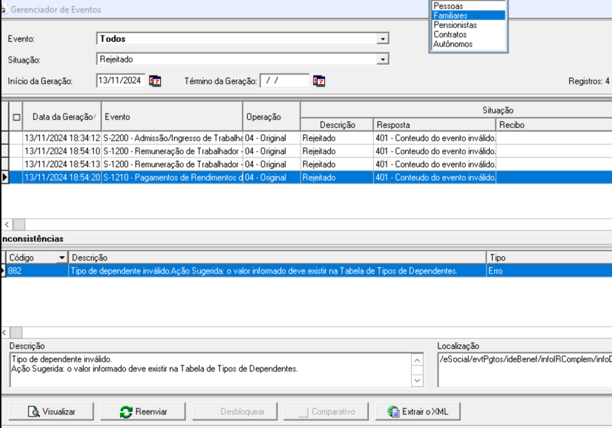 Após, reenvie os eventos mensais (S-1200 e S-1210), em esocial > Geração dos Eventos Mensais, aguardando que retornem como Aceitos