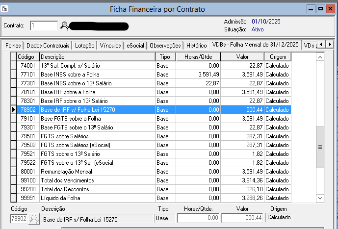 - Para a revisão de janeiro/2026, já estamos implementando uma melhoria no sistema para armazenar o valor do IRRF antes da aplicação da redução. Dessa forma, o usuário poderá confrontar os valores de antes e depois da redução.