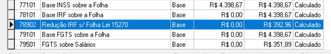Arquivo > Tabelas da Folha > Tabela para Cálculo do IRRF > aba Redução Lei 15.270
