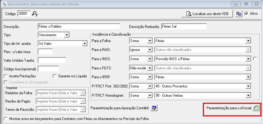 Após relatório salvo- filtrar as rubricas de férias para identificar as que precisam ser alteradas