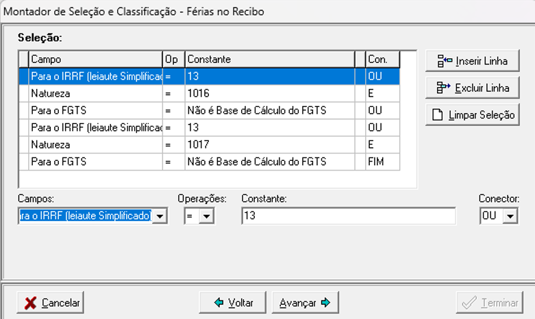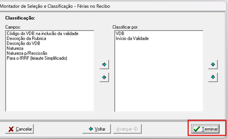 1ª Gerando filtro dos VDBs utilizados no recibo de férias