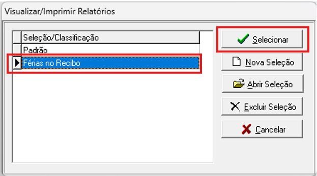 Sistema gerar relatório com todos os VDBs que compõe o recibo de férias