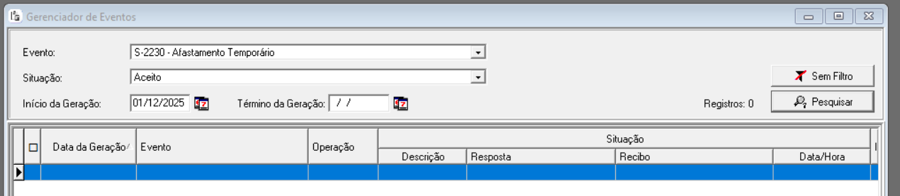 - Desta forma o S-2230 será excluído, e assim permitirá lançar no menu Cadastramento > Registro de Ocorrência o atestado que necessita.