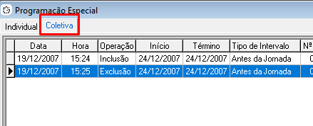 2. Inclusão da Programação Especial – Coletiva