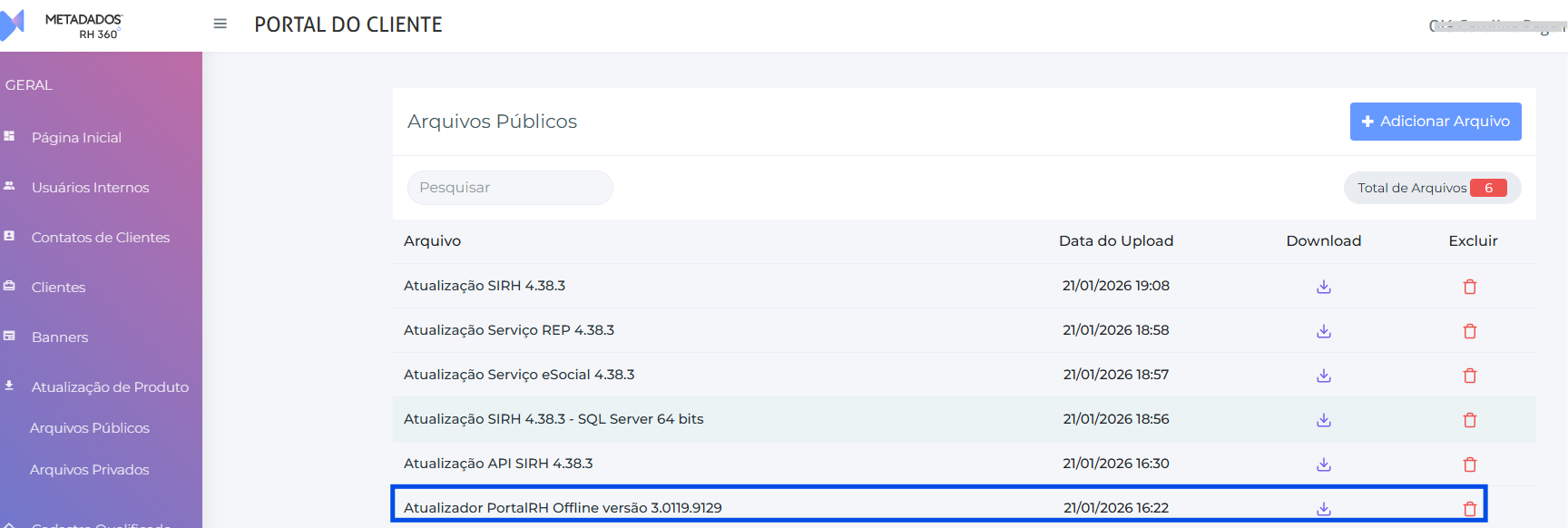 Às 16:00 do dia 21/01/2026 foi liberada a atualização mensal do Portal RH (Versão 3.0119.9129) no Portal do cliente.