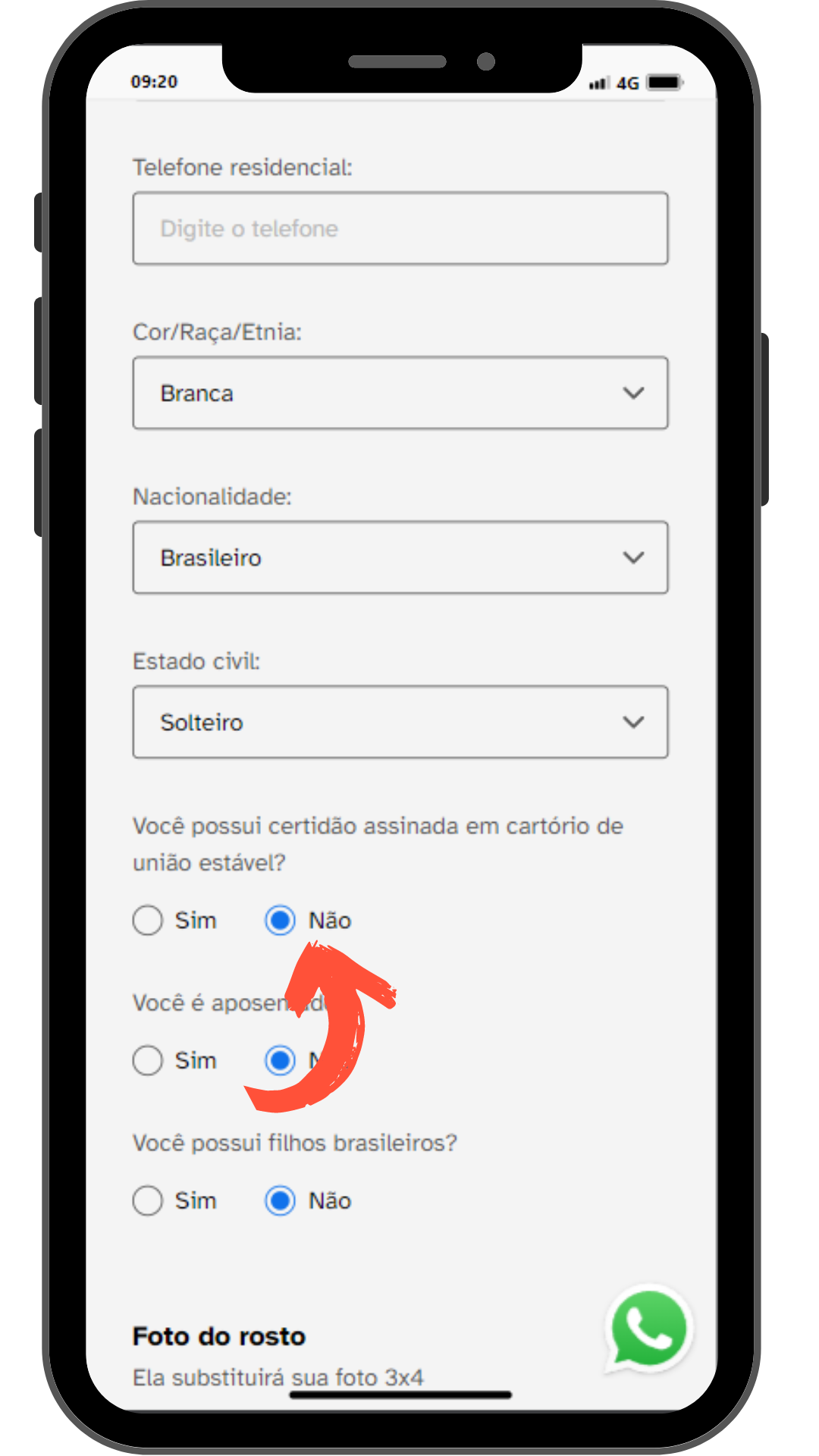 3. Em seguida, na pergunta "Possui certidão assinada de união estável?", selecione a opção "Não".