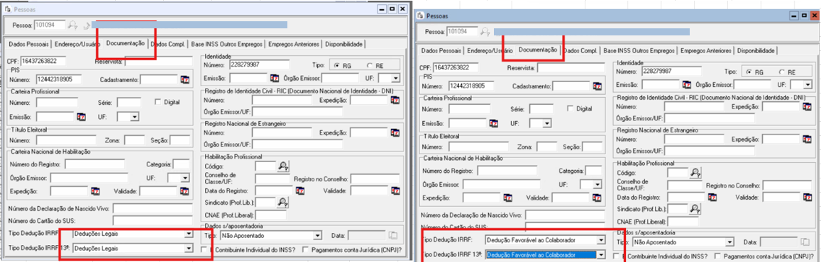 É necessário ajustar no menu Cadastramento > Pessoas > Documentação: no campo Tipo de Dedução de IRRF, para Dedução Favorável ao colaborador: