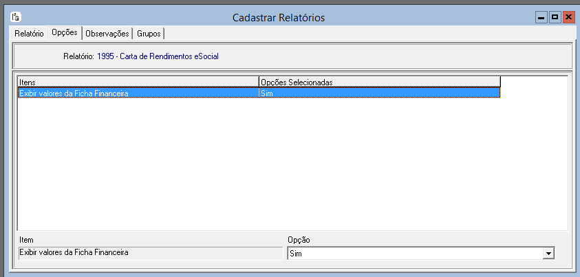 A exibição dos valores da Ficha Financeira é controlada pelo item Exibir Valores da Ficha Financeira.
