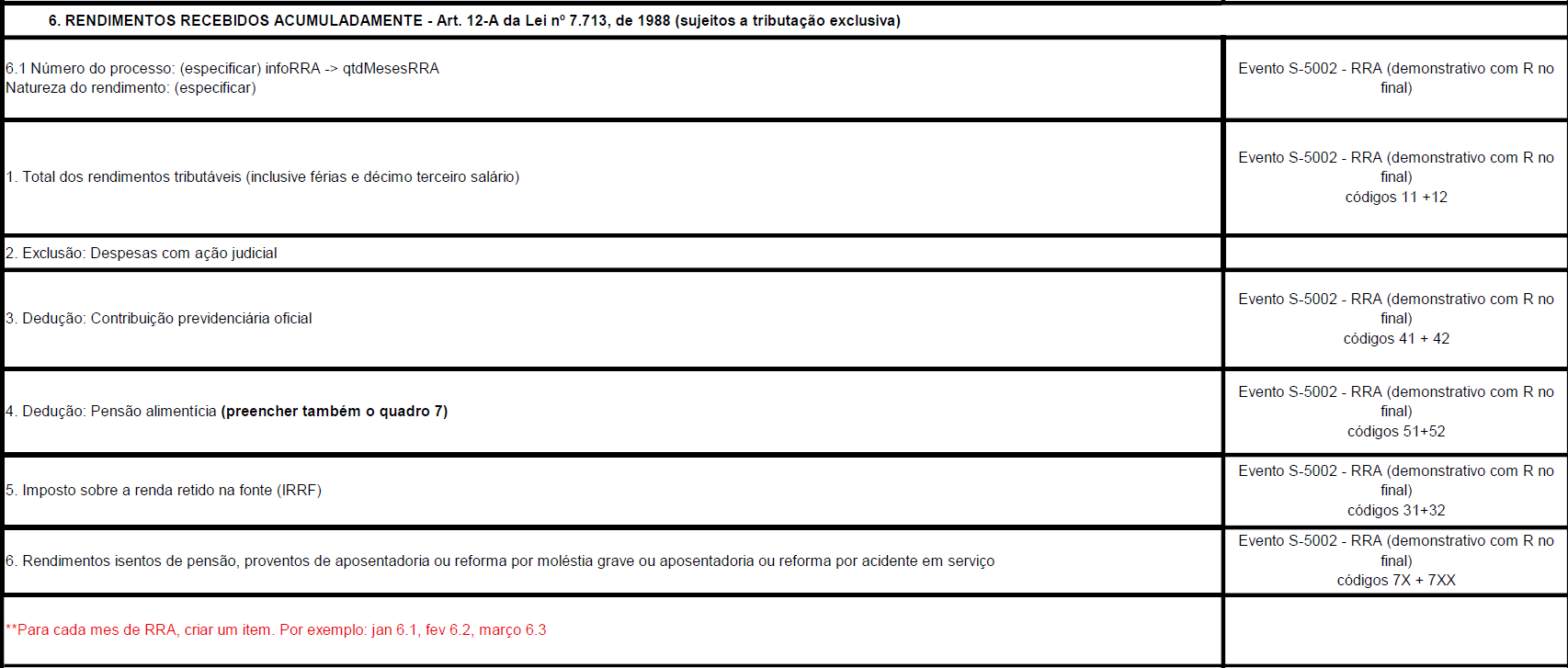 Observação: Processos cadastrados diretamente no Portal do eSocial deverão ter seus valores informados manualmente no informe de rendimentos.