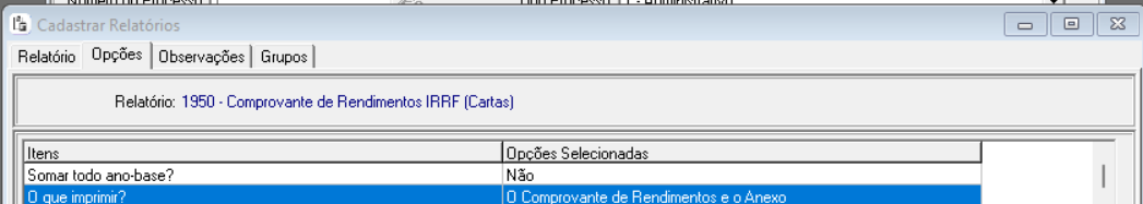 Para a Pessoa que teve esta diferença devido dissídios faz necessário entrar o Relatório com Programa RHPR1995 – Carta de Rendimentos eSocial para isso no menu Arquivo > Cadastrar Relatórios, faça uma cópia do relatório (código livre ou 1996) e na guia Opções no item Exibir valores da Ficha Financeira informe não.