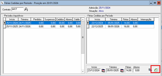 - Vai em Férias > Atualiza férias Cedidas para verificar o gozo.