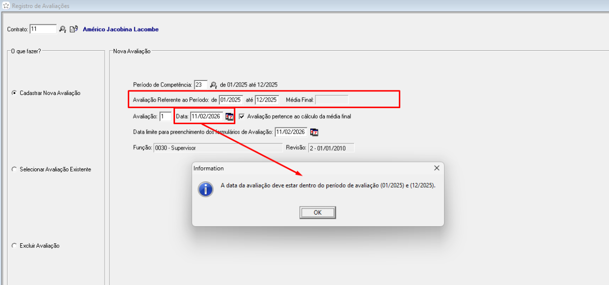 --> Permitir que a data de avaliação seja maior que o período de Avaliação