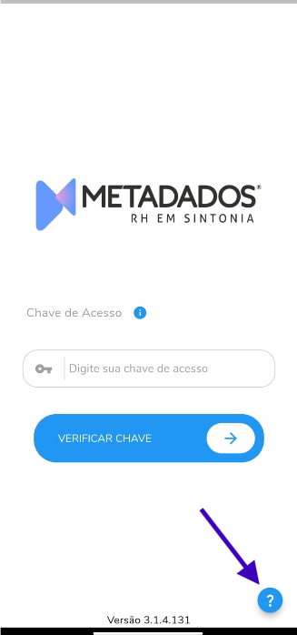 OBS.: A versão do app Portal RH encontra-se na parte inferior da tela onde pede para digitar a Chave de Acesso.