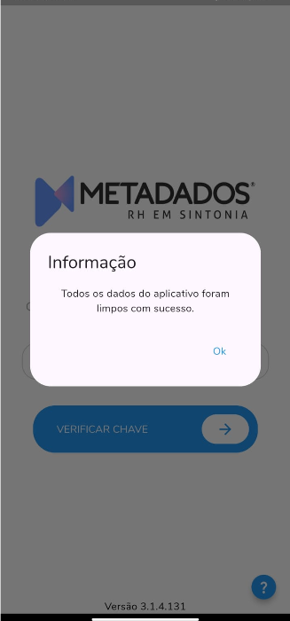 Ao realizar a limpeza de dados, será exibida uma mensagem de confirmação no app, conforme abaixo:
