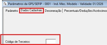 Arquivo > Tabelas Diversas > Tabelas para Cálculo da GPS/SEFIP > Parâmetros da GPS/SEFIP de todos os estabelecimentos impactados.