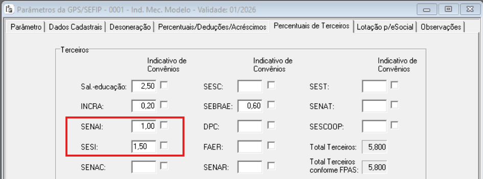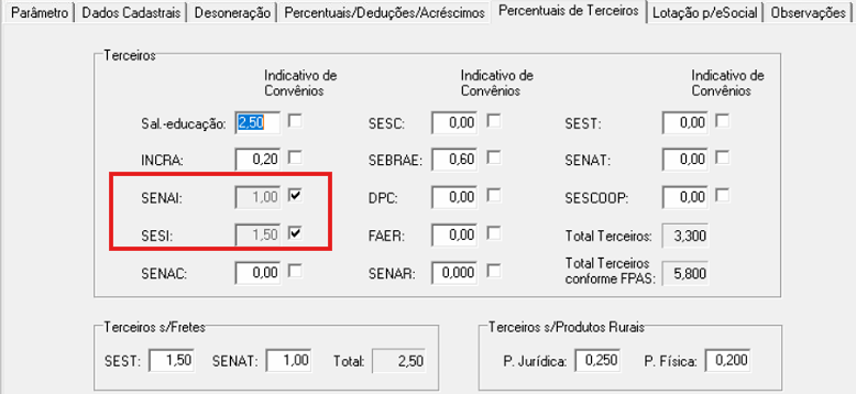 Na guia Percentuais de Terceiros: