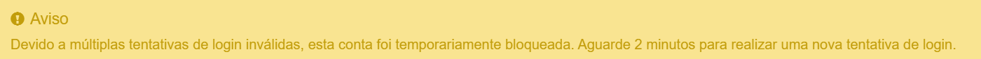 Devido a múltiplas tentativas de login inválidas, esta conta foi temporariamente bloqueada. Aguarde 2 minutos para realizar uma nova tentativa de login.