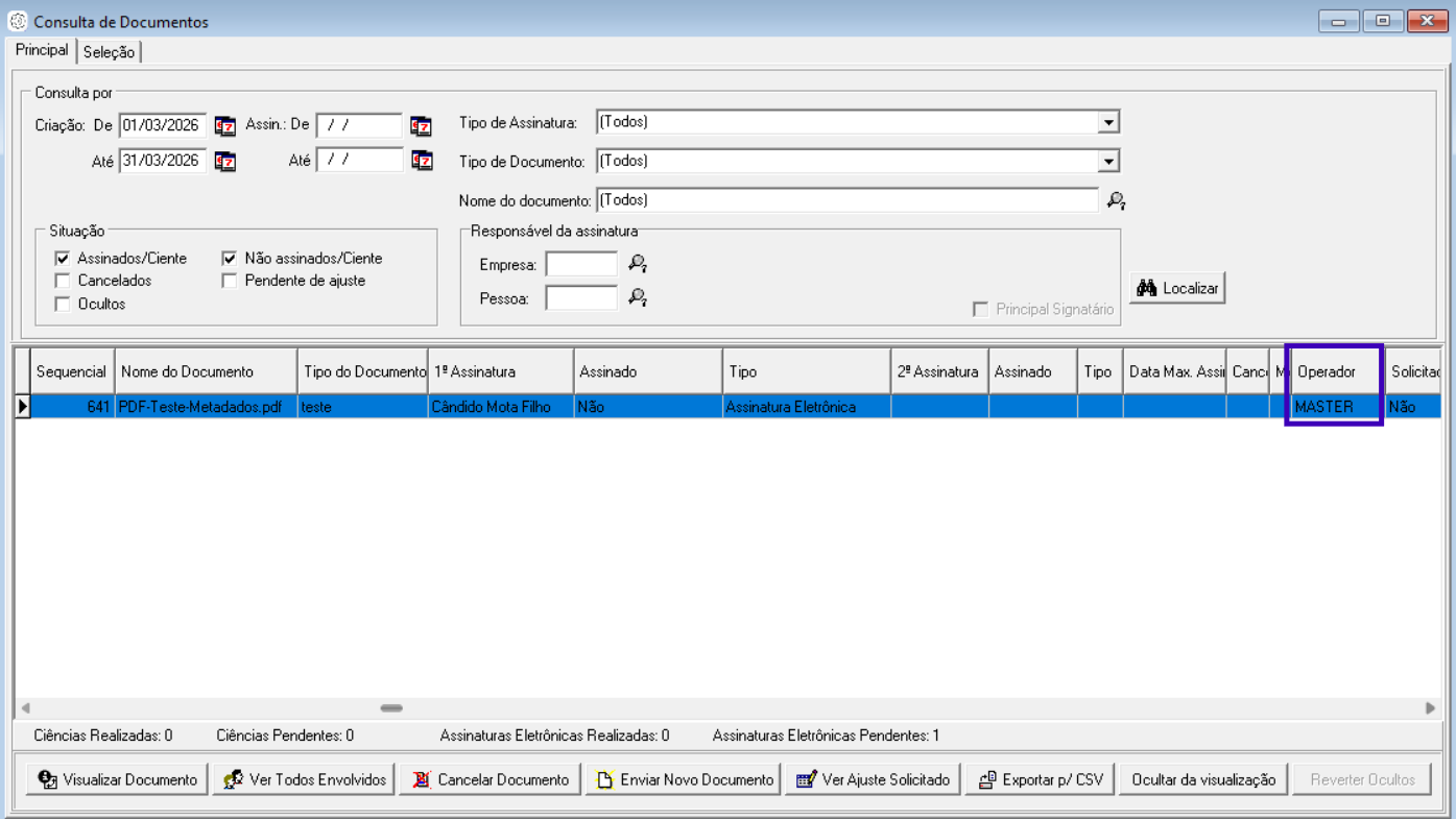Ajuste no SIRH para Gravar dados do operador ao enviar um documento para assinatura, quando feito diretamente pela tela Consulta de Documentos.