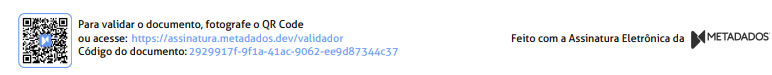 Em cada página será adicionado um rodapé informando que a assinatura foi feita pela plataforma Assinatura Metadados. Esse rodapé contém:
