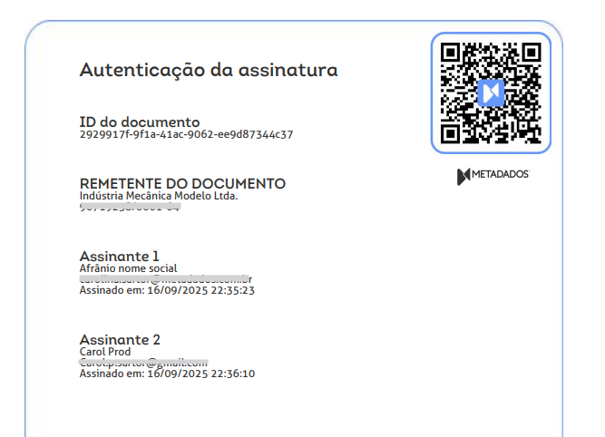 A plataforma METASIGN enviará um e-mail para o endereço informado no momento da assinatura, apenas de forma de NOTIFICAÇÃO que o documento foi assinado ou está pendente de assinatura.