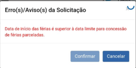 Data de início das férias é superior à data limite para concessão de férias parceladas