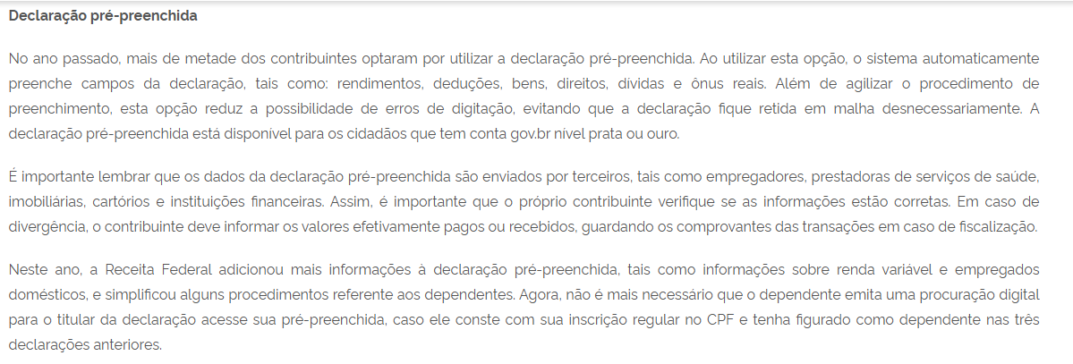 Essa modalidade permite que diversas informações do contribuinte sejam automaticamente importadas, como rendimentos, deduções, bens e direitos, além de dívidas e ônus reais.