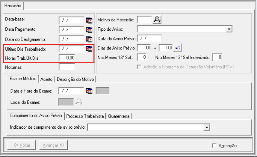 Fique atenta a data sugerida no Último Dia Trabalhado, pois o sistema vai sugerir conforme escala de horário do trabalhador.