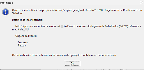 Ao gerar o Evento S-1210: Pagamentos de Rendimentos do Trabalho ocorre o seguinte erro:
