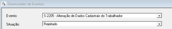 1. No Módulo Folha de Pagamento, acesse o Menu: eSocial > Gerenciador de eventos e selecione o Evento S-2205 Rejeitado.